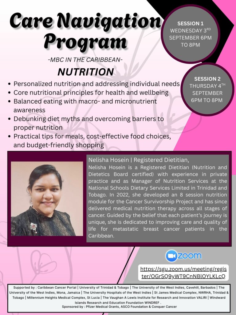 This module focuses on personalized nutrition approaches and core nutritional principles to support health and wellbeing during cancer treatment. Led by Registered Dietitian Nelisha Hosein, the sessions provide practical guidance for balanced eating while addressing individual needs and challenges.